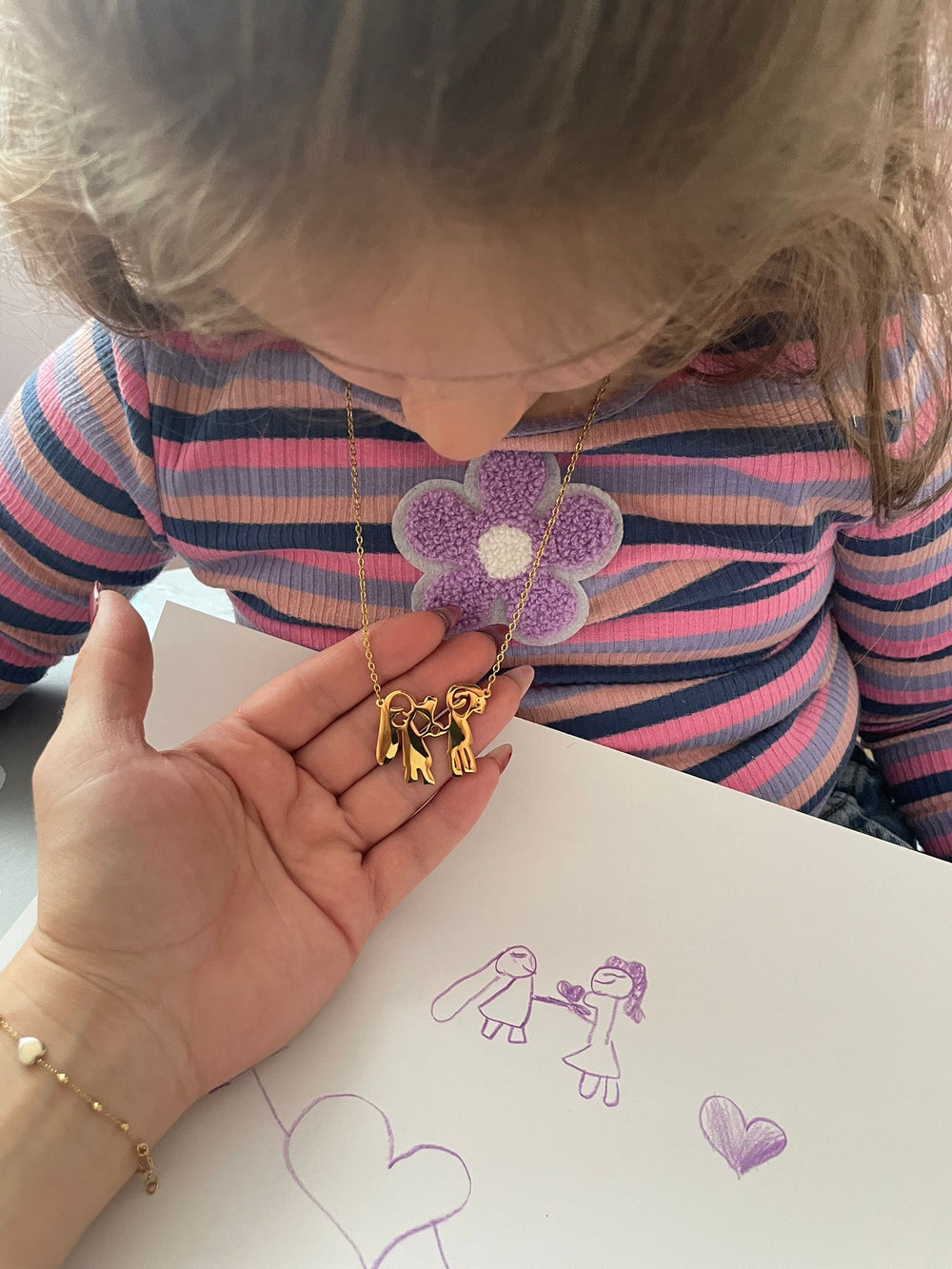 Erleben Sie eine einzigartige Verbindung zu den kreativen Ausdrücken Ihres Kindes. Diese personalisierte Halskette verwandelt Kunstwerke in beeindruckenden Schmuck, der für immer hält und Erinnerungen zelebriert.